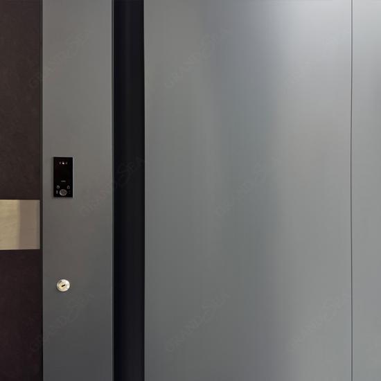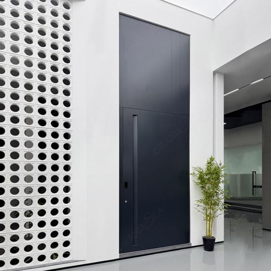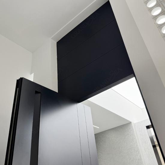 Esse porta pivotante residencial preta Apresenta um design discreto, utilizando liga de alumínio e dobradiças ocultas, permitindo que se integre quase perfeitamente à parede. Inclui também uma maçaneta longa oculta, campainha e sistema multiponto. Você também pode personalizar suas próprias portas pivotantes exclusivas; entre em contato conosco.